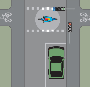 Platser där cyklister korsar väg kan vara signalreglerade.