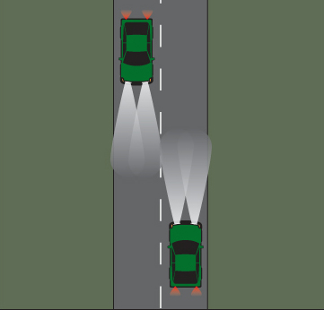 I dimma eller kraftig nederbörd ska du använda halvljus eller dimljus, dock inte tillsammans. I gryning, skymning eller mörker kan helljus också användas men det försämrar ofta sikten. Du får använda dimBAKljus om sikten är kraftigt nedsatt, men inte så att bakomvarande förare bländas. |
